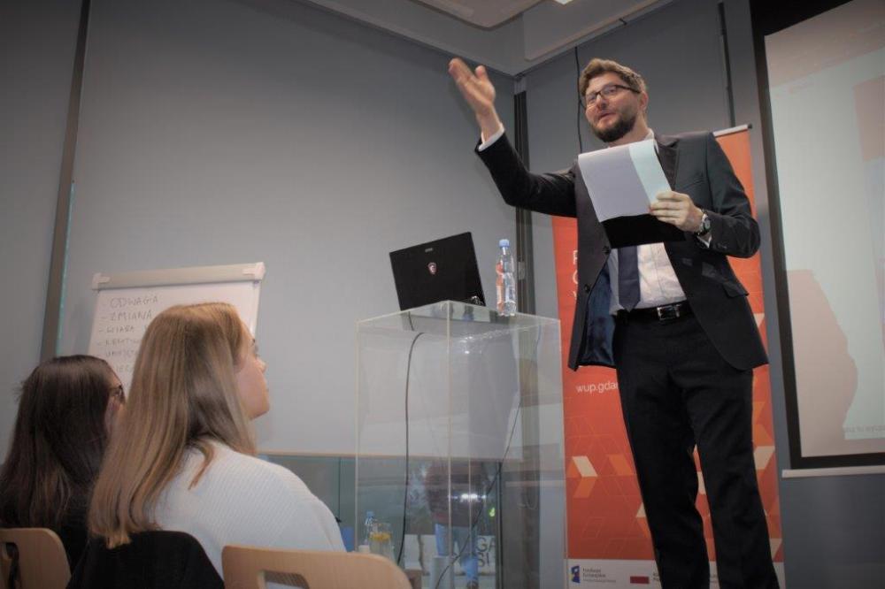 Spotkanie z młodzieżą podczas Pomorskiego Dnia Przedsiębiorczości było też okazją do zainteresowania młodych mieszkańców regionu możliwością skorzystania z oferty projektodawców, którzy realizują działania dla młodzieży, w tym szkolenia zawodowe, dofinansowane z Funduszy Europejskich.
