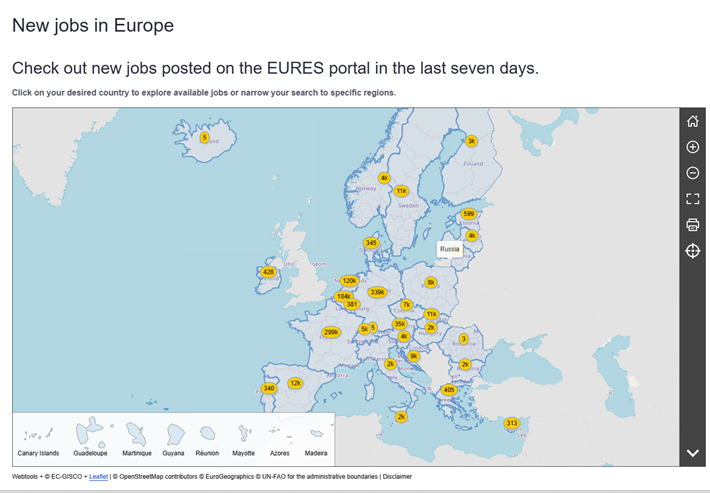 Na stronie głównej portalu EURES: eures.europa.eu pojawiła się nowa funkcja – mapa ofert pracy.